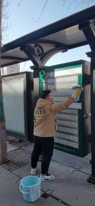 志愿者走上街頭清洗公交站牌、清掃研究生生活區