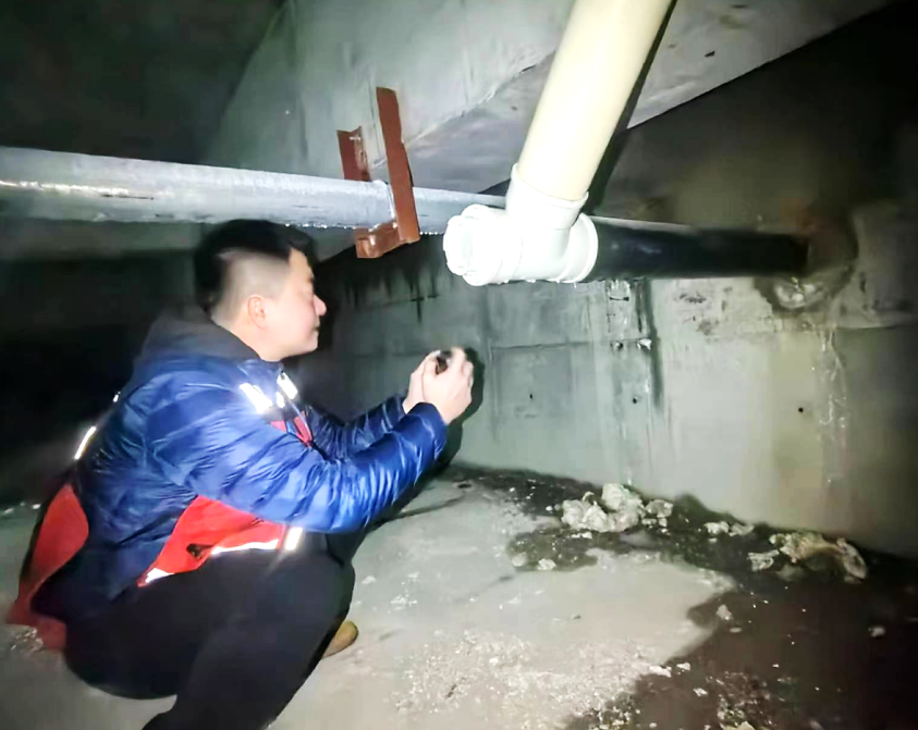 圖3 朱柏潔考察某隔震結構隔震層水管連接情況